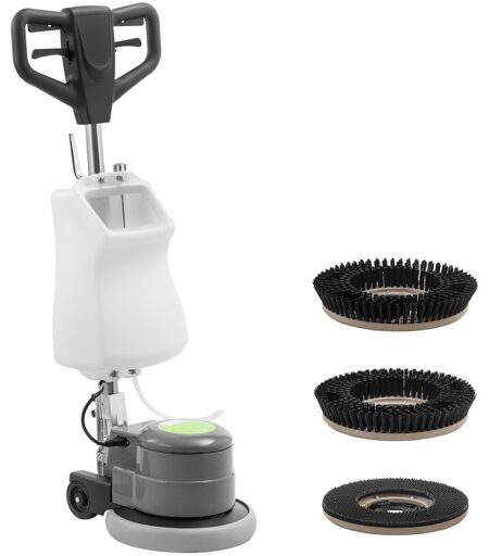 Costruisci fiducia con i tuoi clienti grazie a pavimenti puliti, sia in hotel, supermercati o edifici per uffici con afflusso di persone. Con la macchina monodisco TOPCLEAN 1200PRO+ pulisci rapidamente ed efficacemente diversi tipi di pavimentazione come PVC, marmo, legno o linoleum. Se necessario, utilizza la macchina anche per lucidare e far brillare le superfici. Metti in moto il potente motore da 750 W e sfrutta i 190 giri/min della macchina monodisco per rimuovere anche lo sporco più ostinato. Hai a disposizione due spazzole con un diametro di 33 cm (13"). Fai il lavoro preliminare con la spazzola per schiuma, per la pulizia finale utilizza la spazzola per la pulizia. Con la spazzola per schiuma e un pad in microfibra puoi anche schiumare ottimamente i tappeti prima di procedere alla pulizia finale. La macchina monodisco può essere utilizzata senza alcuna esperienza pregressa, tutti i comandi sono progettati in modo intuitivo. Subito dopo il montaggio iniziale, l'apparecchio è pronto all'uso e lo si manovra senza sforzo su tutte le superfici. Anche negli spazi ristretti, si può manovrare comodamente e con precisione la compatta macchina per lucidare il pavimento. Con il serbatoio dell'acqua fresca da 8 litri e un cavo lungo 12 metri, è possibile pulire ampie aree in un'unica passata. Il design pieghevole crea immediatamente più spazio. Compatto e flessibile, offre la soluzione ideale per una conservazione efficiente. ...