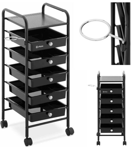 PHYSA Carrello per parrucchiere 5 cassetti 10 kg nero