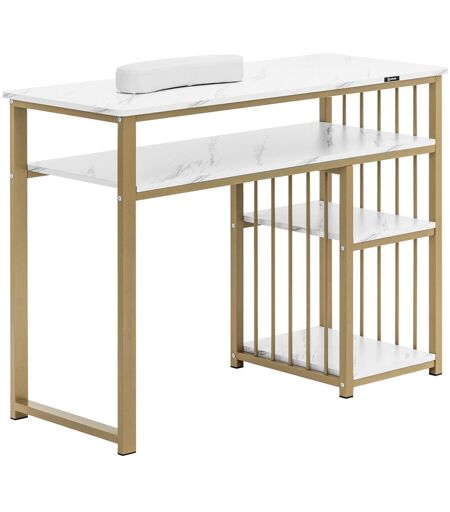 physa Tavolo manicure professionale - Struttura in ferro - Effetto marmo, dorato - 3 ripiani - Poggiamani PHY_MC11