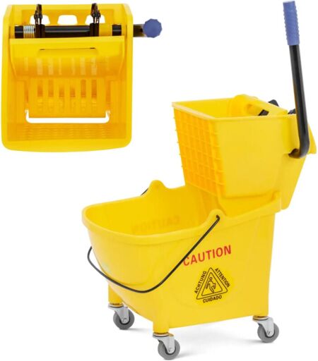 Codice produttore: 10050477 Il carrello per la pulizia Ulsonix ad alta capacità renderà la pulizia del pavimento più facile che mai. Lo strizzatore e altre pratiche funzioni lo rendono facile e comodo da usare. Il secchio integrato da 24 litri fornisce acqua sufficiente per il lavaggio. Questo lo rende l'attrezzatura ideale per scuole, ristoranti, bar, hotel, uffici e tutti gli ambienti che richiedono una pulizia regolare dei pavimenti. Grazie alla sua pressione stabile, lo strizzatore con leva gommata garantisce una pressione uniforme sul mocio. Questo facilita la rimozione dell'acqua in eccesso. Per riempire o svuotare più comodamente il secchio sottostante, è sufficiente rimuovere il compattatore utilizzando la pratica maniglia. Il secchio e lo strizzatore sono realizzati in plastica di facile manutenzione. Questo materiale è ideale per trasportare acqua e prodotti per la pulizia. Le ruote estremamente resistenti garantiscono una guida silenziosa e fluida su qualsiasi superficie. ...