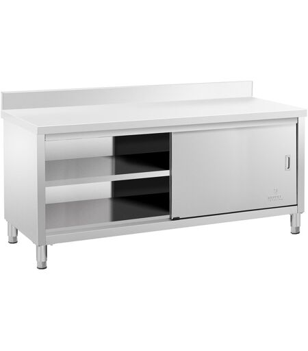 Royal Catering Tavolo acciaio inox con mobile - ECO - 200 x 60 cm - 600 kg - Alzatina - RCSSCB-200X60-E-B