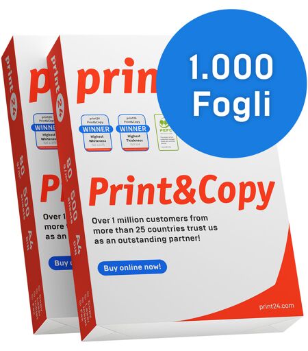 print24 Carta per stampanti Carta per copie 1000 fogli 2 x 500 A4 80g Premium bianco brillante CIE 160 Vincitore del test Certificato ambientale PEFC