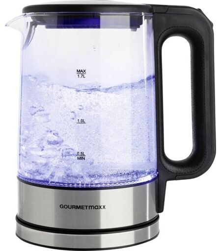 GOURMETMAXX - Glas-Wasserkocher led 1,7l 2200W Edelstahl/schwarz kabellos Bollitore con cavo Nero/acciaio ino