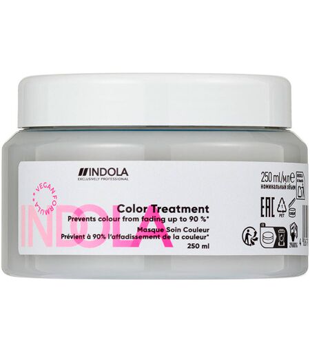INDOLA Color Treatment con alternativa vegana alla cheratina è una maschera per capelli a protezione intensiva del colore con un valore di pH ottimale di 4,5, che fissa il colore nei capelli e allo stesso tempo li condiziona profondamente. Questo impedisce al colore di sbiadire e assicura che fino al 90% del colore venga mantenuto anche dopo 30 lavaggi* - per una maggiore brillantezza del colore e un'eccezionale lucentezza. Formula vegana**. *Se usato come programma di cura completo. **Senza ingredienti di origine animale. Applicazione: utilizzare la maschera per capelli protettiva del colore dopo lo shampoo. Applicare sui capelli tamponati e lavorare. Per uso settimanale, lasciare agire per 5-10 minuti e poi risciacquare accuratamente. Per uso quotidiano, una piccola quantità può essere utilizzata come maschera leave-in. ...