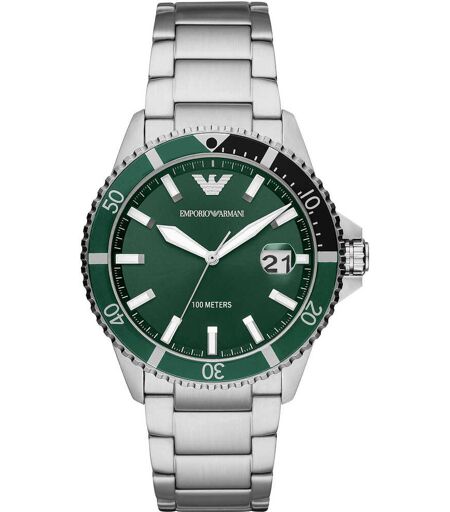 Orologio Da Uomo Di Emporio Armani Della Collezione World Explorer. Orologio Solo Tempo Con Cassa Realizzata In Acciaio Inossidabile, Finitura Mista. Colore: Argento. Forma: Rotonda. Spessore: 11 Mm. Misura: 42 Mm. Il Colore Del Quadrante È Verde. ...