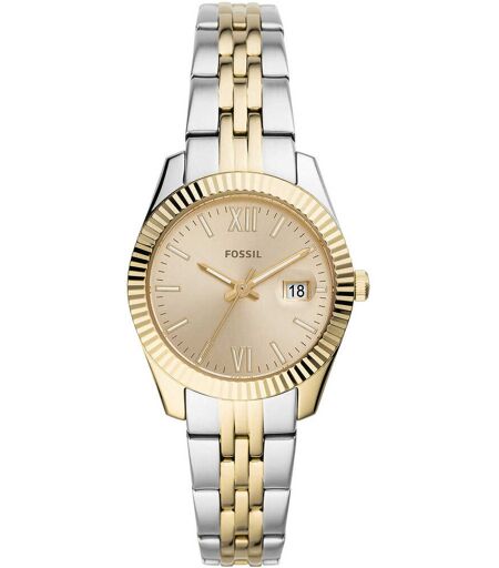 Orologio Solo Tempo Da Donna Di Fossil Della Collezione Scarlette Mini. Orologio Con Cassa In Acciaio Inossidabile Con Finitura Mista, Di Forma Rotonda Di 32 Mm, Con Spessore Di 10 Mm E Di Colore Argento. Orologio Con Quadrante Oro E Vetro Di Colore ...