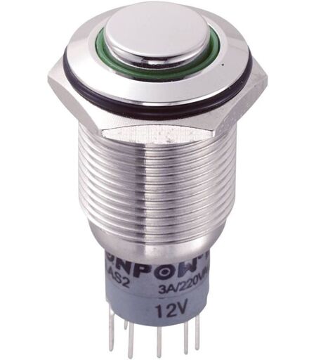 TRU Components 701795 LAS2GQH-22E/G/12V/S/P Pulsante antivandalo 250 v/ac 3 a 2 x On / (On) Momentaneo Verde IP65 1 pz. -