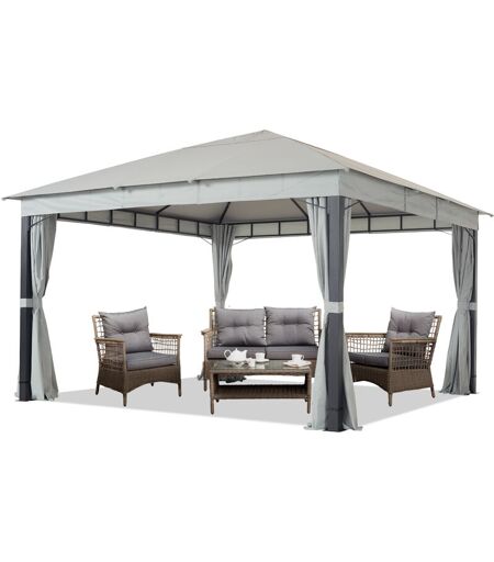 TOOLPORT Gazebo da Giardino 4x4 m Alu Premium con Copertura del Tetto Impermeabile ca. 220 g/m² - 4 pareti Laterali grigio