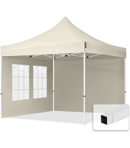 TOOLPORT Gazebo Pieghevole Giardino 3x3m - 2 laterali (con finestre) Telo Poliestere idrorepellente Padiglione Mercati Sagre crema
