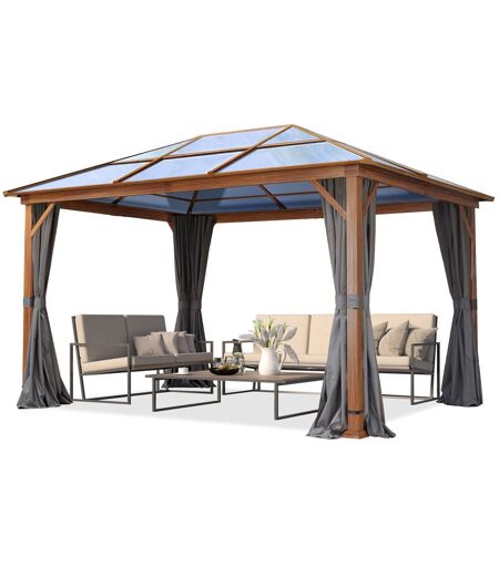 TOOLPORT Gazebo da giardino 3x4 m look quercia, tetto ca. 8mm policarbonato, 4 teli laterali color grigio