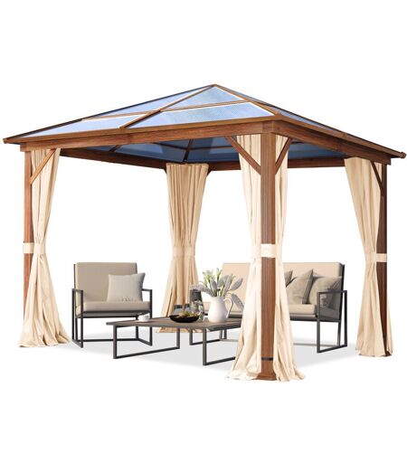 TOOLPORT Gazebo da giardino 3x3 m look quercia, tetto ca. 8mm policarbonato, 4 teli laterali color crema