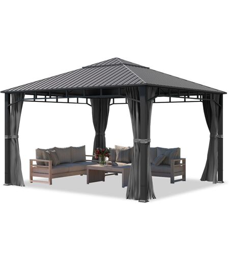 TOOLPORT Gazebo da giardino 4x4 m tetto hardtop in acciaio 4 teli laterali color grigio, profilo ca. 90x90 mm