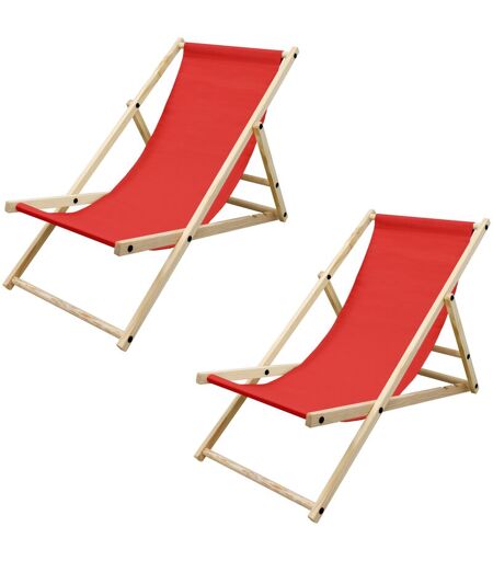 ECD GERMANY - Set di 2 Sedie Sdraio Pieghevoli in Legno di Pino e Tessuto Oxford fino a 120 kg Rosso Lettino Prendisole Spiaggia Balcone Giardino
