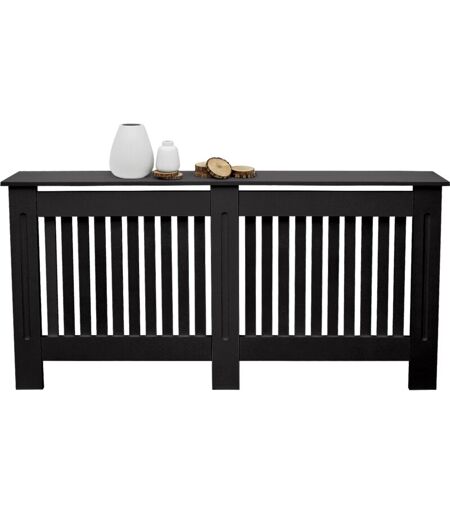 ECD GERMANY Copritermosifone MDF 152x19x82 cm Rivestimento del Radiatore Verniciato Nero Copertura del Radiatore Stile Casa di Campagna