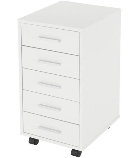 ML-DESIGN Cassettiera Mobile Bianca con 5 Cassetti 33 x 38 x 63,5 cm in Truciolato con Rivestimento a Melamina Mobiletto Archivio Documenti con Ruote Armadio