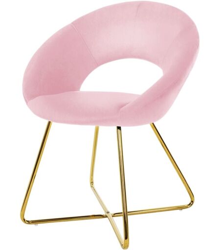 ML-DESIGN Sedia per Sala da Pranzo in Velluto Rosa con Schienale Rotondo Poltroncina Imbottita da Cucina Salotto con Gambe in Metallo Oro Seduta Ergonomica