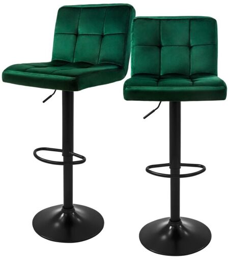 ML-DESIGN Set di 2 Sgabelli da Bar Rivestimento in Velluto Verde Sedia da Bancone Regolabile in Altezza 63-83 cm Girevole a 360° Sgabello Alto da Cucina