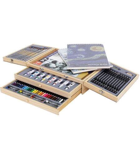 ECD GERMANY - Set per Pittura con Valigetta in Legno 85 pezzi 3 Blocchi da Disegno A4 Colori Acrilici e Accessori Kit Disegno Pennelli Pastelli