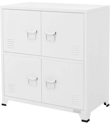 ML-DESIGN Schedario da Ufficio 75x40x80,5 cm Bianco Acciaio Mobile a 4 Gambe Armadietto in Metallo 4 Ante 2 Scomparti Interni Armadio Industriale