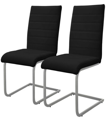 ML-DESIGN Set di 2 Sedie a Sbalzo per Sala da Pranzo Imbottite in Pelle Finta Nero con Telaio in Metallo Argento con Schienale Alto da Cucina Salotto