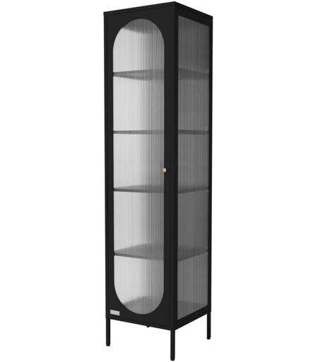 ML-DESIGN - Vetrina 42x175x40 cm Nero Vetrinetta Stretta con 5 ripiani e 1 Anta Mobile da Soggiorno in Metallo Libreria in Acciaio Stile Industriale