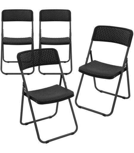 ECD GERMANY Set 4 Sedie Pieghevoli in Plastica pp Effetto Rattan Nero con Telaio in Acciaio Sedie da Giardino Balcone Camping Salvaspazio Resistenti alle
