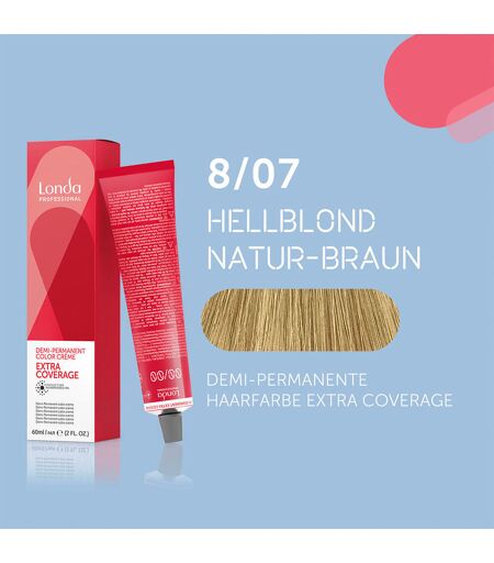 Londa Professional Londa Colore per capelli in crema demi-permanente Extra Coverage 8/07 Biondo Chiaro Marrone Naturale, Tubo 60 ml