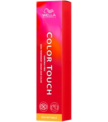 Wella Professionals Color Touch è una tinta demi-permanente per capelli che dona lucentezza e luminosità ai capelli. La formula delicata contiene la tecnologia Metal Purifier per una maggiore sicurezza del colore e quindi risultati ancora più affidabili, anche su capelli danneggiati. Vegano, privo di ammoniaca, siliconi e oli minerali. Oltre 90 vibranti tonalità di colore, miscelabili tra loro. Risultati cromatici vividi che svaniscono in modo uniforme dopo 28 lavaggi. Copertura dei capelli grigi fino al 70% con ricrescita armoniosa. Applicazione ottimizzata con flacone o pennello e vassoio. Formula antigoccia per un'applicazione ultraprecisa. Da usare con l'emulsione Colour Touch. Imballaggio riciclato fino al 100%. Applicazione: utilizzare guanti adatti.Applicare la massa colorante sui capelli tamponati. Tempo di applicazione: fino a 20 minuti. Con Climazon fino a 15 minuti. Applicazione sulle radici: Per radici visibili, applicare la massa colorante prima sulla zona delle radici. Equalizzazione del colore: Per un rinfresco minimo: lavorare il colore sulle lunghezze e sulle punte negli ultimi 5 minuti del tempo di applicazione.Per un rinfresco massimo: applicare il colore sulle lunghezze e sulle punte per tutto il tempo di posa.Può essere utilizzato anche sulle lunghezze e sulle punte se si utilizza una tinta permanente Wella Professionals alle radici. Capelli già schiariti: tempo di applicazione 5-20 minuti, a seconda della struttura del capello o dell'intensità desiderata. AVVERTENZA: I coloranti per capelli possono causare gravi reazioni allergiche. Leggere e osservare le seguenti istruzioni. Questo prodotto non è destinato a persone di età inferiore ai 16 anni. I tatuaggi temporanei con "henné nero" possono aumentare il rischio di allergie. NON COLORARE I CAPELLI SE avete un'eruzione cutanea sul viso o se il vostro cuoio capelluto è sensibile, irritato o ferito,avete mai avuto una reazione dopo aver colorato i capelli,un tatuaggio temporaneo con "henné nero" ha mai causato una reazione.Solo per uso professionale. Sciacquare bene i capelli dopo l'uso. In caso di contatto con gli occhi, sciacquare immediatamente. Non utilizzare per colorare ciglia e sopracciglia. Indossare guanti adatti. Effettuare un test di compatibilità cutanea su ogni cliente prima della colorazione. Tenere fuori dalla portata dei bambini. ...