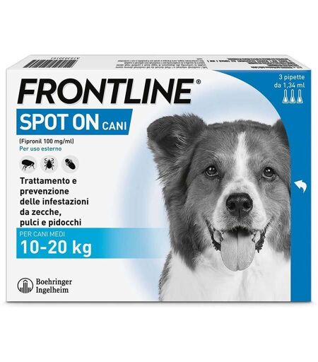 Frontline Spot On Cani x3 Pipette, Antiparassitario Per (10-20Kg) Contro Pulci, Zecche E Pidocchi 3 pz Pipette monodose