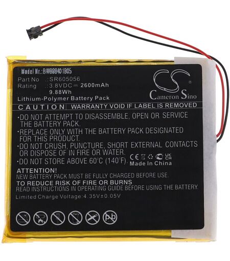 vhbw - the clever way - Batteria ricaricabile di ricambio, compatibile e di alta qualità, ad alta capacità, per lettore MP3, video e music player, lettore musicale (Può trovare tutti i modelli corrispondenti qui di seguito) - Le nostre batterie ricaricabili soddisfano tutti i requisiti rilevanti per la sicurezza operativa CONTENUTO DELLA SPEDIZIONE: - 1x batteria ricaricabile SPECIFICHE TECNICHE: - Tecnologia: Li-Poly - Capacità: 2600 mAh - Tensione: 3,8 V - Energia: 9,88 Wh - Numero di celle: 1 COMPATIBILE CON: - Astell & Kern AK70 Per garantire la compatibilità, verificare se la batteria ricaricabile attualmente in uso è presente nell'elenco. SOSTITUISCE: - Astell & Kern SR605056 Accessori e pezzi di ricambio di alta qualità. Per prolungare la durata di vita dei Suoi apparecchi elettrici. ...