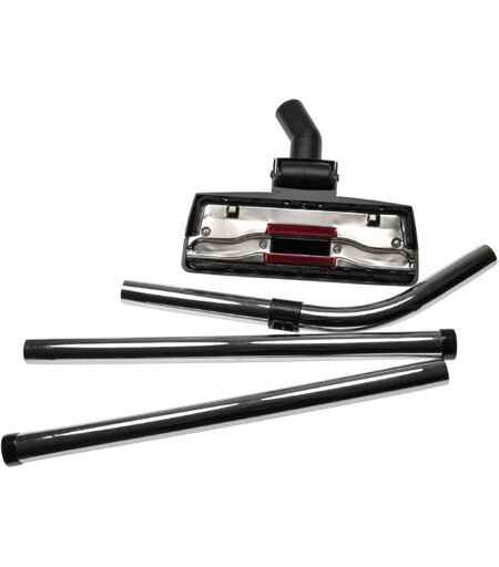 vhbw - the clever way Set di accessori da 5 pezzi per vari utilizzi e una maggiore flessibilità. IL SET È COMPOSTO DA: - 1x BOCCHETTA PER PAVIMENTI - Per la pulizia di moquette o pavimenti duri come parquet, PVC, legno, piastrelle, marmo ecc. - Larghezza: 26 cm - Con snodo girevole e inclinabile - ideale per aspirare negli angoli - Piastra del pavimento in metallo - Intercambiabile - Grande rullo al centro della bocchetta - Materiale: plastica - Colore: nero - 3x TUBO - Con regolatore della forza di aspirazione - Lunghezza per estensione del tubo di aspirazione: 50 cm - Lunghezza della curva del tubo di aspirazione: 48 cm - Materiale: acciaio inox - Colore: nero / argentato - 1x TUBO DELL'ASPIRAPOLVERE - Pezzo di connessione tra l'impugnatura e l'aspirapolvere - Inclusi connettore dispositivo e manicotto - Lunghezza con impugnatura: 268 cm - Robusto e flessibile - Materiale: plastica - Colore: nero - Tipo di montaggio: meccanismo a scatto / il manicotto è infilato sul tubo ...