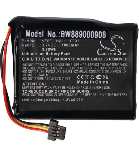 vhbw - the clever way - Batteria ricaricabile di ricambio, compatibile e di alta qualità, ad alta capacità, per dispositivo di navigazione e GPS (Può trovare tutti i modelli corrispondenti qui di seguito) - La batteria può essere caricata con il Suo caricabatterie standard o con uno compatibile - Le nostre batterie ricaricabili soddisfano tutti i requisiti rilevanti per la sicurezza operativa CONTENUTO DELLA SPEDIZIONE: - 1x batteria ricaricabile SPECIFICHE TECNICHE: - Tecnologia: Li-Ion - senza effetto memoria - Capacità: 1000 mAh - Tensione: 3,7 V - Energia: 3,7 Wh - Numero di celle: 1 - Peso: 20 g - Dimensioni (Lung. x Larg. x Alt.): 4,3 x 3,6 x 0,6 cm - Protezione da cortocircuito, sovraccarico e surriscaldamento COMPATIBILE CON: - TomTom Start 52 Per garantire la compatibilità, verificare se la batteria ricaricabile attualmente in uso è presente nell'elenco. SOSTITUISCE: - TomTom LHA11110001, VF6F Accessori e pezzi di ricambio di alta qualità. Per prolungare la durata di vita dei ...