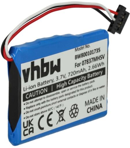 vhbw - the clever way - Batteria ricaricabile di ricambio, compatibile e di alta qualità, ad alta capacità, per dispositivo di navigazione e GPS (Può trovare tutti i modelli corrispondenti qui di seguito) - La batteria può essere caricata con il caricabatterie standard o con uno compatibile - Le nostre batterie ricaricabili soddisfano tutti i requisiti rilevanti per la sicurezza operativa CONTENUTO DELLA SPEDIZIONE: - 1x batteria ricaricabile SPECIFICHE TECNICHE: - Tecnologia: Li-Ion - senza effetto memoria - Capacità: 720 mAh - Tensione: 3,7 V - Energia: 2,67 Wh - Numero di celle: 1 - Peso: 22 g - Dimensioni (L x l x A): 5,4 x 3,9 x 0,6 cm Per garantire la compatibilità, verificare se la batteria ricaricabile attualmente in uso è presente nell'elenco. SOSTITUISCE: - Mitac 338937010159 Accessori e pezzi di ricambio di alta qualità. Per prolungare la durata di vita dei Suoi apparecchi elettrici. ...