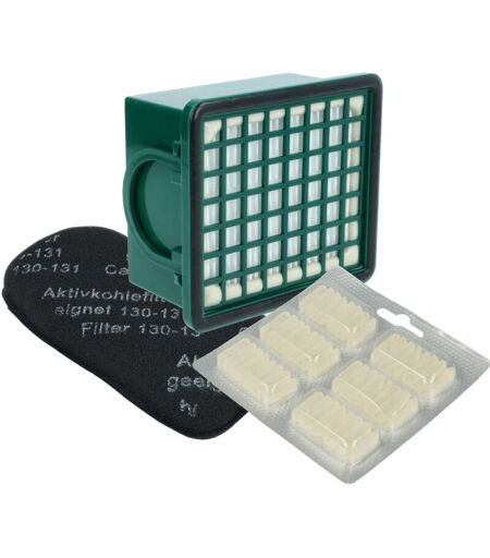 VHBW Set di 8 accessori compatibile con Vorwerk folletto 131, 130, 131sc aspirapolvere - filtro ai carboni attivi, filtro hepa, cartucce di profumo -