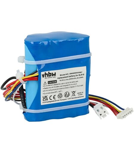 vhbw - the clever way - Batteria ricaricabile di ricambio, compatibile e di alta qualità, ad alta capacità, per aspirapolvere o robot / dispositivo per la pulizia della casa (Può trovare tutti i modelli corrispondenti qui di seguito) - La batteria può essere caricata con il Suo caricabatterie standard o con uno compatibile - Le nostre batterie ricaricabili soddisfano tutti i requisiti rilevanti per la sicurezza operativa Inoltre, nelle nostre offerte è possibile trovare cartucce profumate, per profumare l'ambiente mentre si usa l'aspirapolvere o il robot aspirapolvere. CONTENUTO DELLA SPEDIZIONE: - 1x batteria ricaricabile SPECIFICHE TECNICHE: - Tecnologia: Li-Ion - senza effetto memoria - Capacità: 2500 mAh - Tensione: 18,5 V - Energia: 46,25 Wh - Numero di celle: 5 - Dimensioni (Lung. x Larg. x Alt.): 6,9 x 5,6 x 3,7 cm - Connessioni: 1x connettore JST-PH a 2 pin / 1x connettore JST-SH a 6 pin - Senza custodia - Protezione da cortocircuito, sovraccarico e surriscaldamento ...