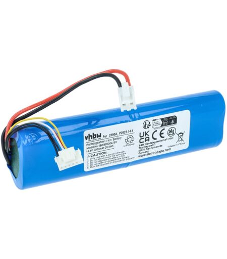 vhbw - the clever way - Batteria ricaricabile di ricambio, compatibile e di alta qualità, ad alta capacità, per aspirapolvere o robot / dispositivo per la pulizia della casa (Può trovare tutti i modelli corrispondenti qui di seguito) - La batteria può essere caricata con il caricabatterie standard o con uno compatibile - Le nostre batterie ricaricabili soddisfano tutti i requisiti rilevanti per la sicurezza operativa Inoltre, nelle nostre offerte è possibile trovare cartucce profumate, per profumare l'ambiente mentre si usa l'aspirapolvere o il robot aspirapolvere. CONTENUTO DELLA SPEDIZIONE: - 1x batteria ricaricabile SPECIFICHE TECNICHE: - Tecnologia: Li-Ion - senza effetto memoria - Capacità: 2000 mAh - Tensione: 14,4 V - Energia: 28,8 Wh - Colore : blu - Numero di celle: 4 - Peso: 190 g - Lunghezza cavo: 9,8 cm - Connessioni: 1x connettore JST a 2 pin / 1x connettore Micro JST a 6 pin COMPATIBILE CON Bissel 2278+, 2284+, 2387+, 2390+, 2390A, 3034+, 2390, 23903, 2275+ Per garantire ...