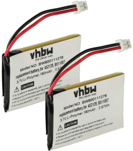 VHBW 2x batteria compatibile con Plantronics CS60 auricolari cuffie wireless (180mAh, 3,7V, Li-Poly) -