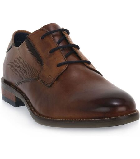 scarpa classica da uomo con la tomaia in morbida pelle e suola in gomma. derby con lacci e logo bugatti laterale. colore: cognac. ...