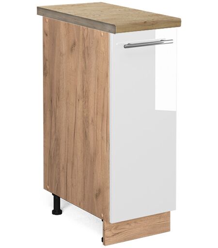 Vicco - Armadio cucina dispensa alto Fame-Line, Bianco lucido, 30 cm , pl Rovere