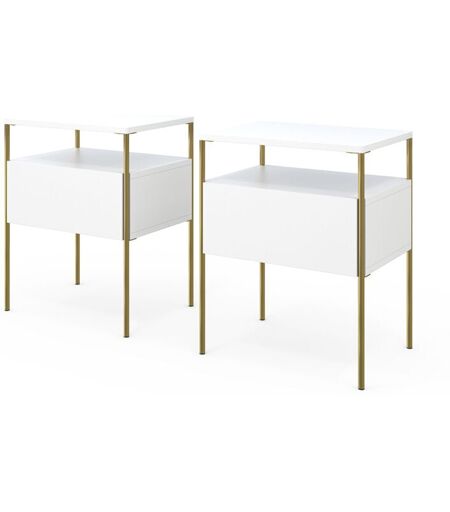 Vicco - Comodino camera da letto Mira, Bianco/Oro, 40 x 50 cm Set di 2