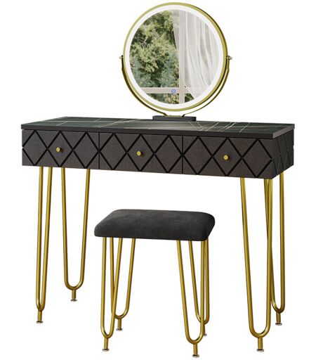 Vicco - Tavolo da toeletta Mirabell, Nero, 100 cm con specchio led e sgabello