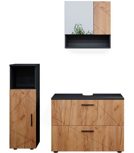 Vicco - Set mobili bagno Irma, Quercia dorata/antracite, 3 parti, con mobile midi