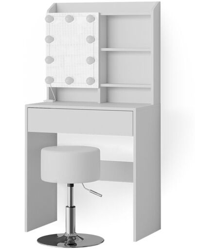 Vicco Tavolo da toeletta Laura, Bianco, 70 cm con illuminazione led e sgabello