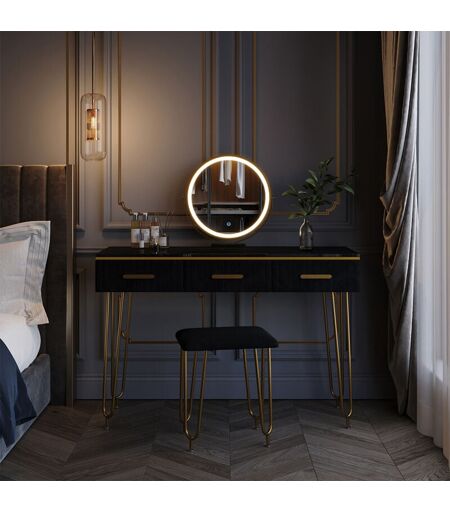 Vicco - Tavolo da toeletta Layla, Nero, 100 cm con specchio led e sgabello