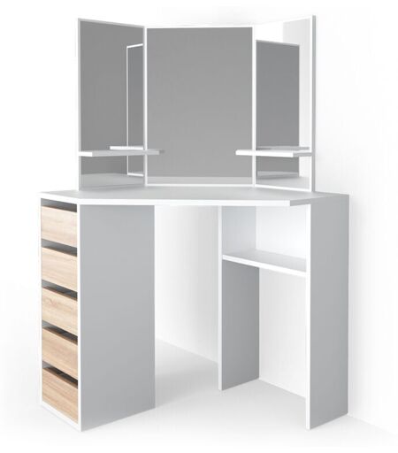 Vicco Tavolo da trucco ad angolo Arielle, Bianco/Sonoma, 110 cm,