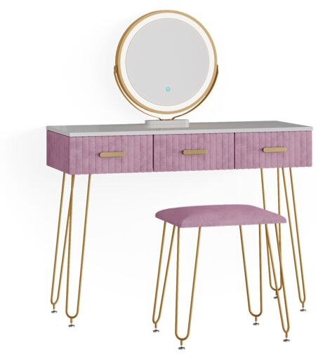 Vicco - Tavolo da toeletta Layla, rosa, 100 cm con illuminazione led e sgabello