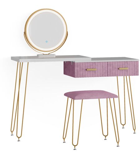 Vicco - Tavolo da toeletta Zoey, rosa, 120 cm con illuminazione led e sgabello