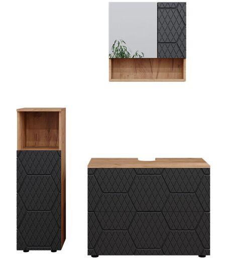 Vicco - Set mobili bagno Irma, Antracite a righe, 3 pezzi, con cabinet midi