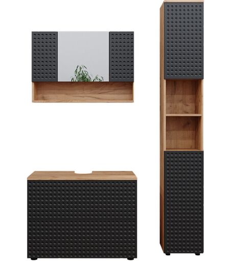 Vicco - Set mobili bagno Irma, Antracite puntinato, 3 pezzi, con mobile a specchio 80 cm