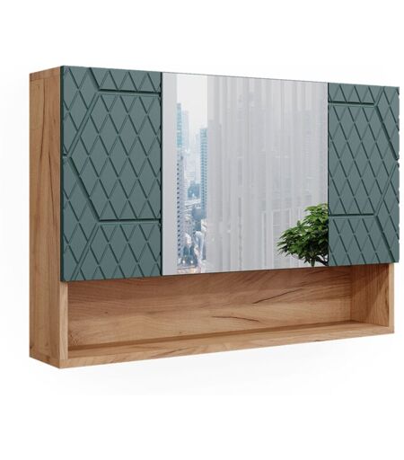 Vicco - Mobile da bagno con specchio Irma, Quercia verde/oro, 80.1 x 55 cm